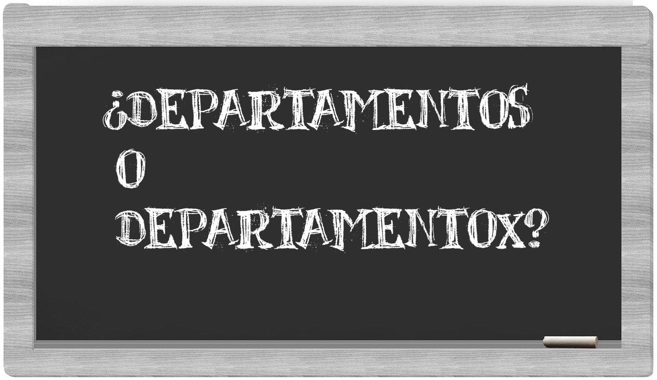En el particular contexto de las palabras departamentos y departamentox, no deberías titubear en tu elección, puesto que únicamente departamentos es la que se encuentra correctamente redactada. Por otro lado, departamentox no está registrada en el Diccionario de la Real Academia Española.