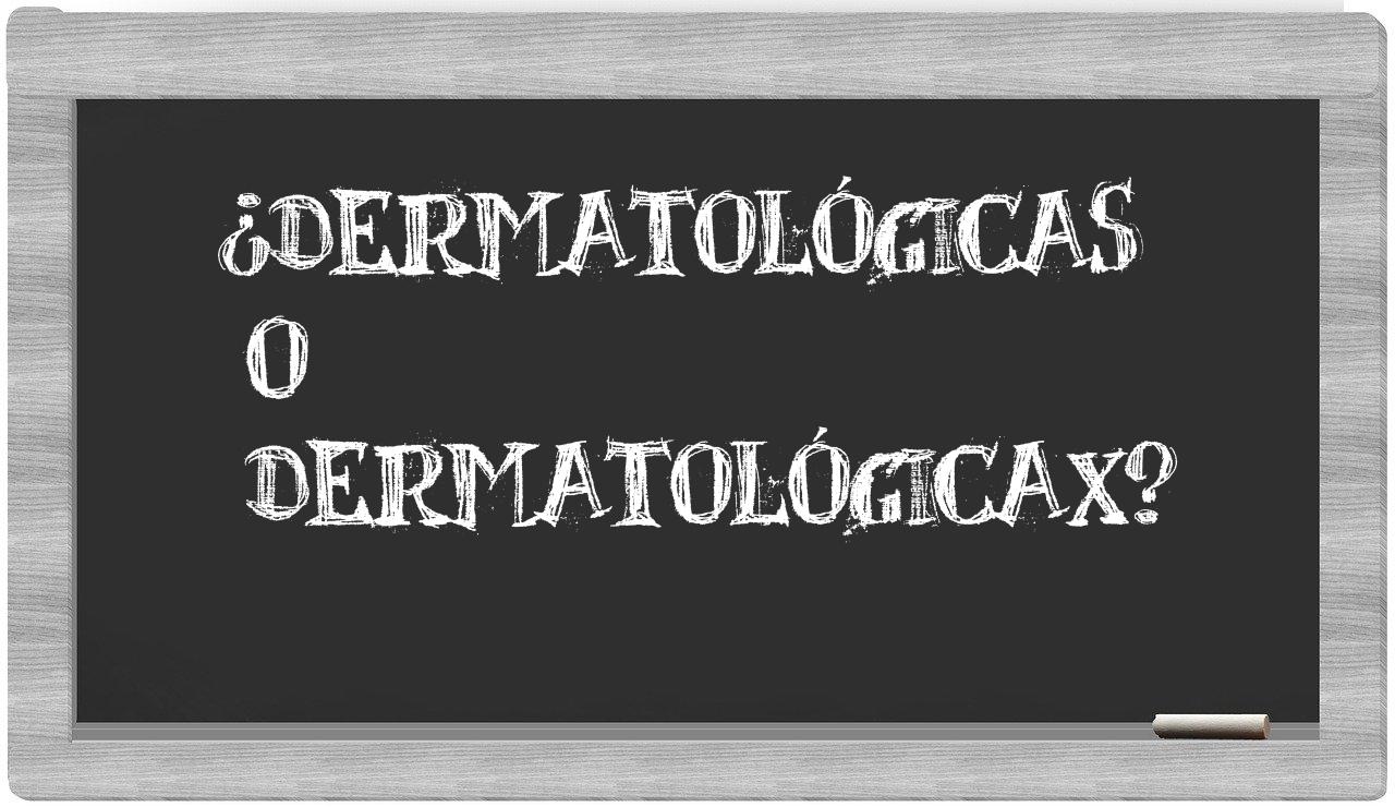 En la situación particular que involucra los términos dermatológicas y dermatológicax, no hay motivo para vacilar, puesto que únicamente dermatológicas se encuentra debidamente registrada. Por otro lado, dermatológicax no figura en el repertorio de la Real Academia Española.