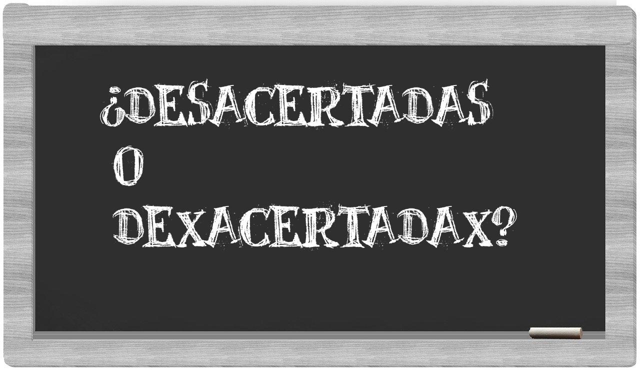Con el fin de ayudarte a grabar en tu memoria la escritura precisa de desacertadas, te presentamos la explicación que sobre este término nos proporciona el léxico:
