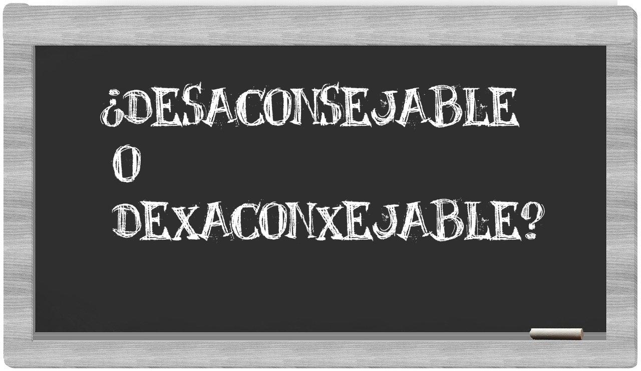 Cuando se trata de la relación entre desaconsejable y dexaconxejable, la elección es clara y sin ambigüedades, dado que solo desaconsejable se encuentra debidamente registrada y aceptada en el Diccionario de la Real Academia Española, mientras que dexaconxejable carece de reconocimiento en su lexicografía.