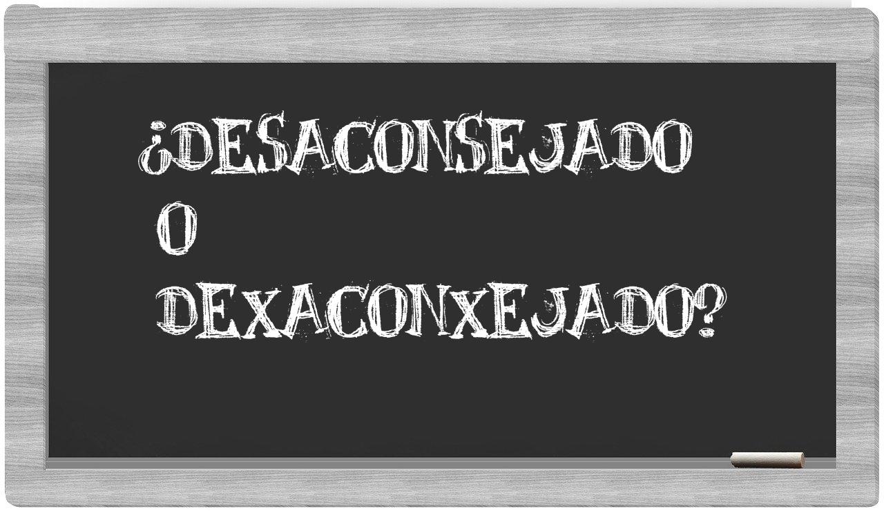 La mezcla entre desaconsejado y dexaconxejado surge fundamentalmente de su semejanza al ser pronunciadas. En la gran mayoría de los dialectos hispanohablantes, su fonética es tan parecida que puede inducir a suponer que poseen una escritura idéntica. No obstante, la manera correcta de escribir cada término se sustenta en su raíz etimológica y en las normativas particulares de la lengua española.