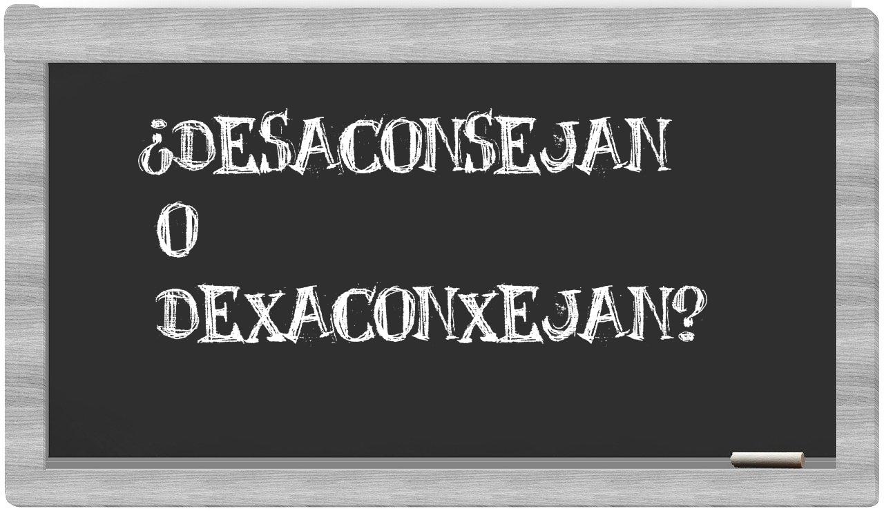 Cuando se trata de las palabras desaconsejan y dexaconxejan, no hay lugar para la incertidumbre, puesto que solo desaconsejan se presenta como la opción correcta; de hecho, dexaconxejan no figura en el prestigioso Diccionario de la Real Academia de la Lengua.