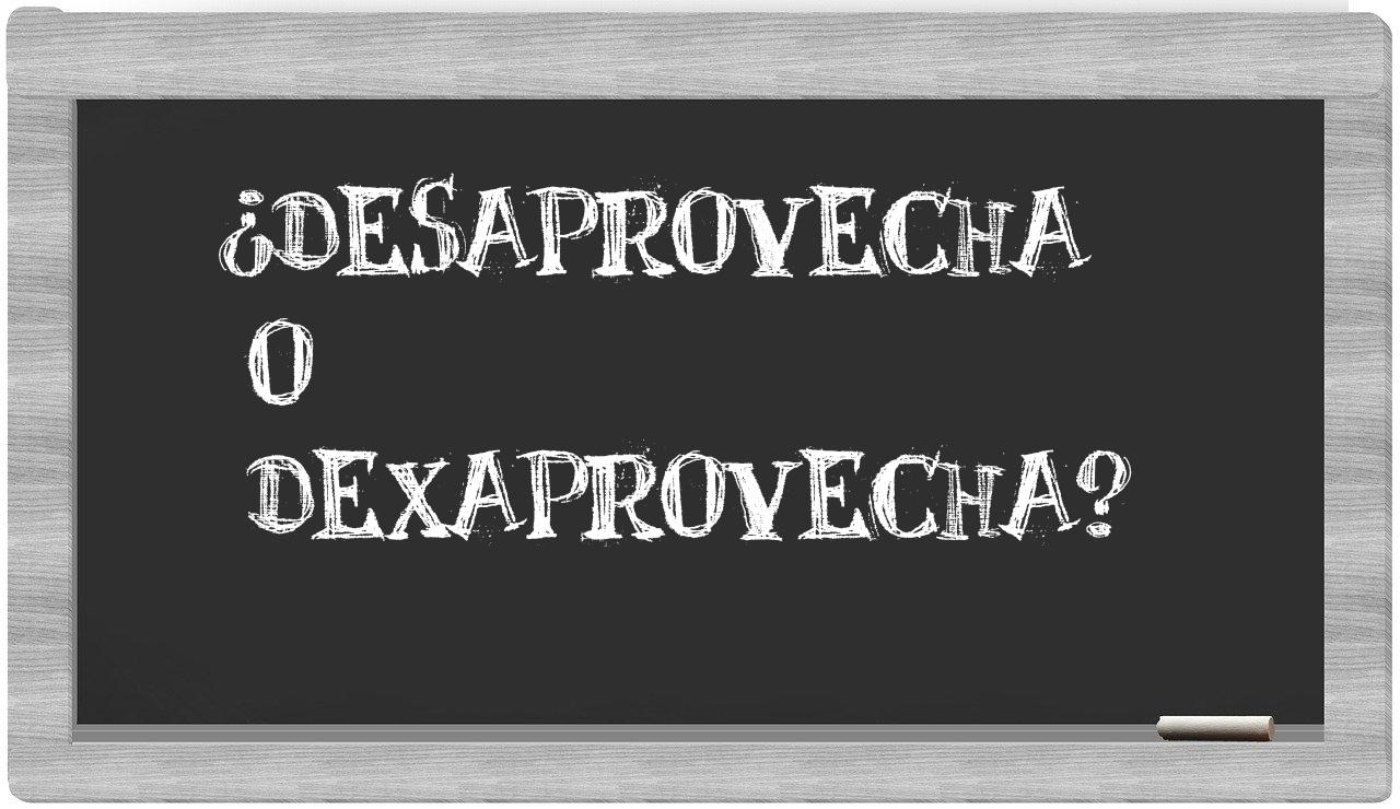 Cuando se trata de la distinción entre desaprovecha y dexaprovecha, nunca deberías titubear, puesto que únicamente desaprovecha es la opción que se encuentra correctamente formulada; dexaprovecha carece de reconocimiento en el Diccionario de la Real Academia Española.