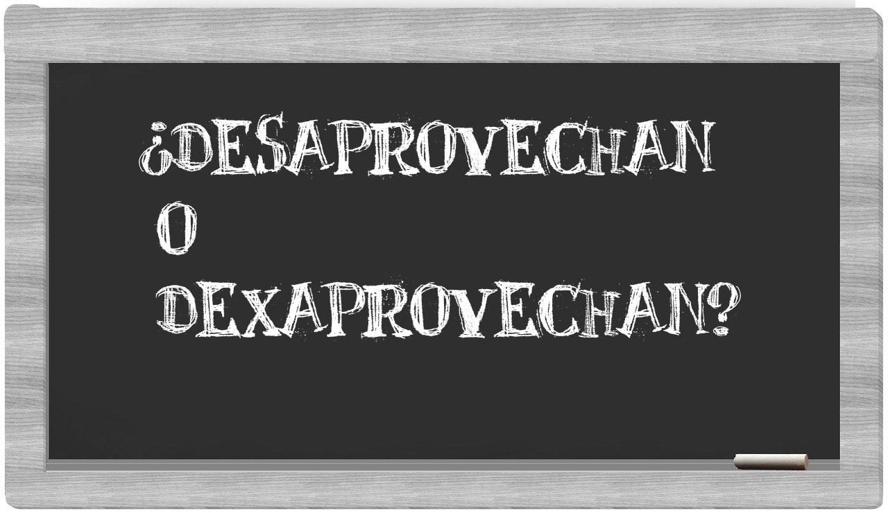 En la circunstancia particular que involucra los términos desaprovechan y dexaprovechan, no deberías titubear en absoluto, puesto que solo desaprovechan es la forma válida en el idioma, mientras que dexaprovechan no se encuentra registrada en el Diccionario de la Real Academia Española.