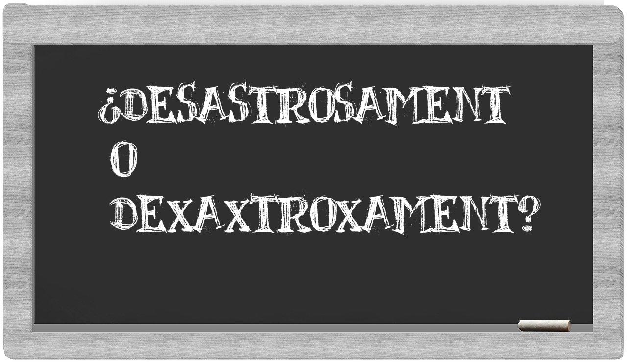 En la situación específica que involucra a desastrosament y dexaxtroxament, no deberías titubear ni un instante, pues únicamente desastrosament se encuentra correctamente redactada. Por otro lado, dexaxtroxament no figura en el Diccionario de la Real Academia Española.