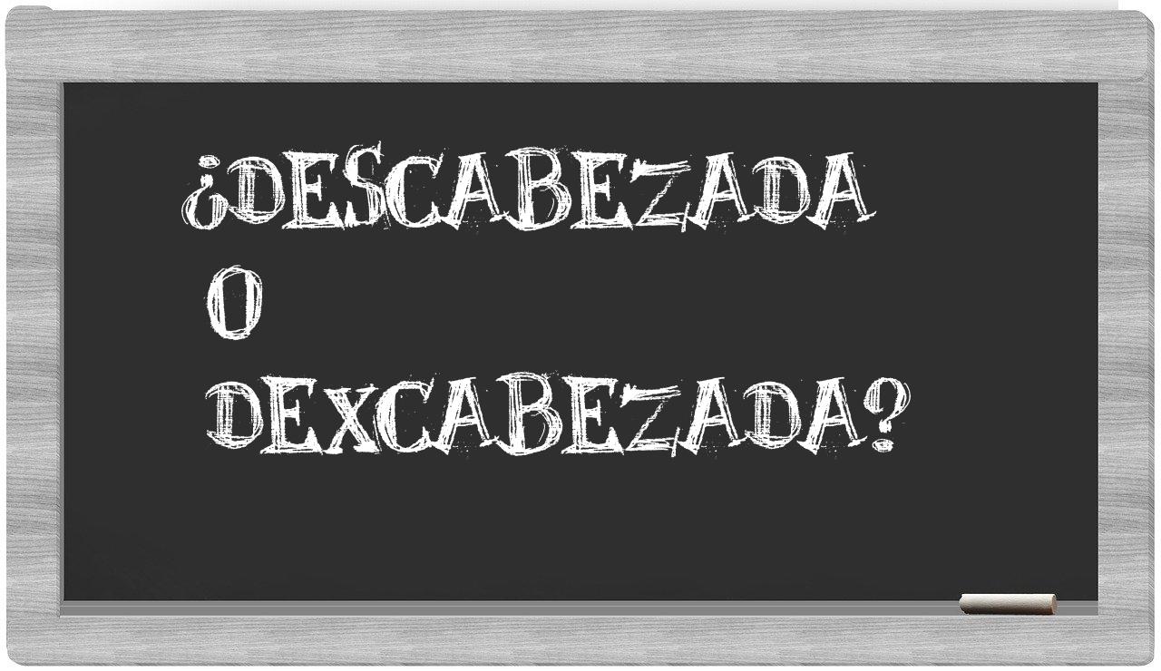 En la particular relación entre los términos descabezada y dexcabezada, la elección debe ser evidente, porque únicamente descabezada se encuentra debidamente registrada en el léxico oficial. Por otro lado, dexcabezada no forma parte del repertorio de la Real Academia de la Lengua.