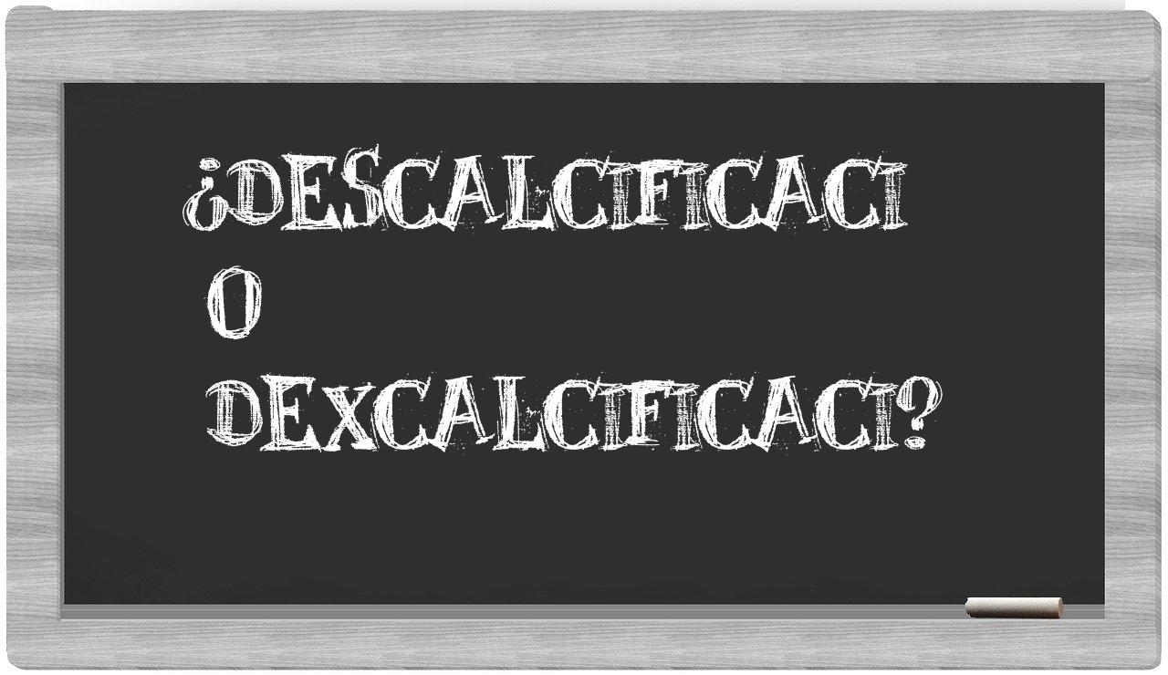 En la situación particular que involucra a descalcificaci y dexcalcificaci, nunca deberías vacilar, puesto que únicamente descalcificaci se encuentra adecuadamente redactada. En cambio, dexcalcificaci no figura en el léxico de la Real Academia Española.