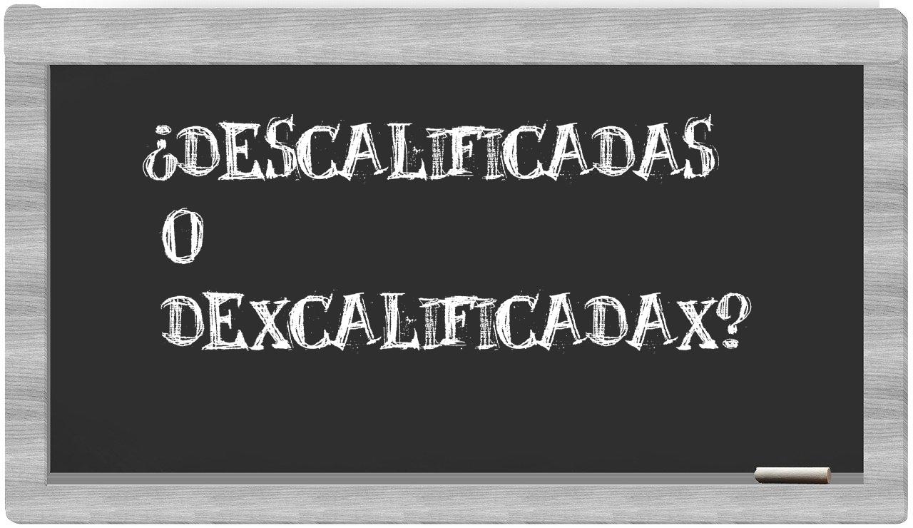 Cuando se presenta la elección entre descalificadas y dexcalificadax, la decisión debe ser clara y sin titubeos, puesto que únicamente descalificadas es la forma adecuada. Por otro lado, dexcalificadax no figura en el Diccionario de la Real Academia Española.