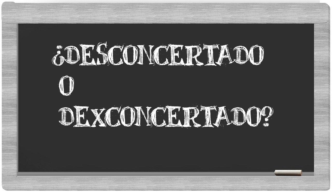 Cuando se presenta la disyuntiva entre desconcertado y dexconcertado, es fundamental no vacilar, dado que únicamente desconcertado es la que se encuentra adecuadamente redactada. Por su parte, dexconcertado no figura en el glosario de la Real Academia Española.