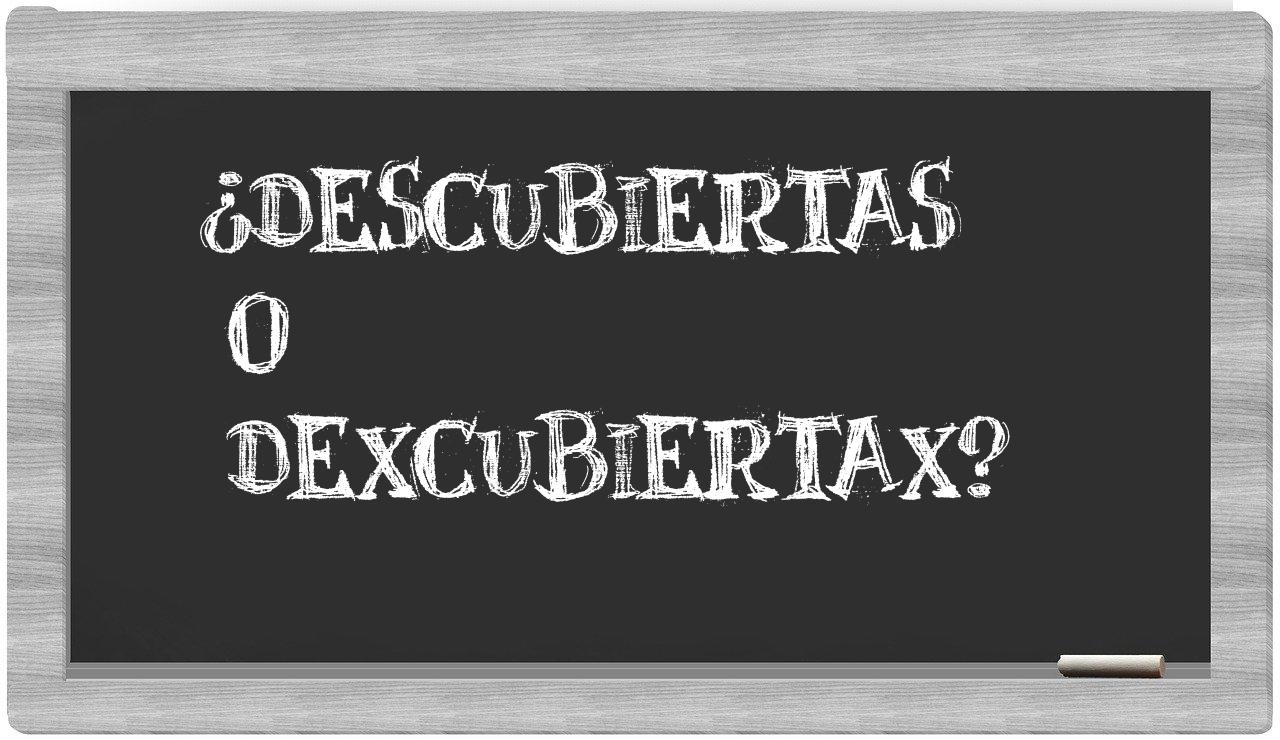 En lo que respecta a la relación entre las palabras descubiertas y dexcubiertax, resulta fundamental que no tenga reparos, puesto que únicamente descubiertas se presenta debidamente redactada. El término dexcubiertax no se encuentra en el prestigioso Diccionario de la Real Academia Española.