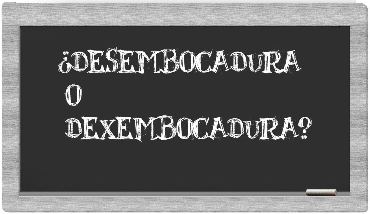 Cuando se presenta la comparación entre desembocadura y dexembocadura, resulta imperativo no titubear, puesto que únicamente desembocadura se encuentra debidamente redactada. Por otro lado, dexembocadura carece de presencia en el Diccionario de la Real Academia Española.