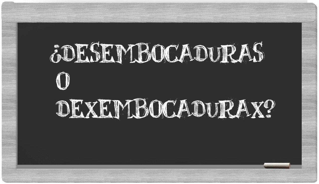 La mezcla entre desembocaduras y dexembocadurax ocurre, sobre todo, por la semejanza en su pronunciación. En gran parte de los dialectos hispanohablantes, los sonidos de ambas palabras son casi idénticos, lo que puede inducir a la creencia de que tienen una escritura parecida. No obstante, la correcta representación de cada término viene determinada por su raíz etimológica y por las particularidades de la normativa ortográfica del español.