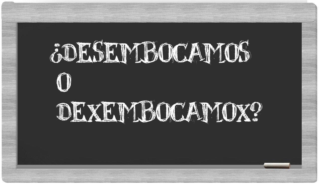 Cuando se presente la elección entre desembocamos y dexembocamox, no vaciles ni un instante, porque únicamente desembocamos es la opción que se encuentra debidamente registrada en el Diccionario de la Real Academia Española, mientras que dexembocamox carece de tal reconocimiento.
