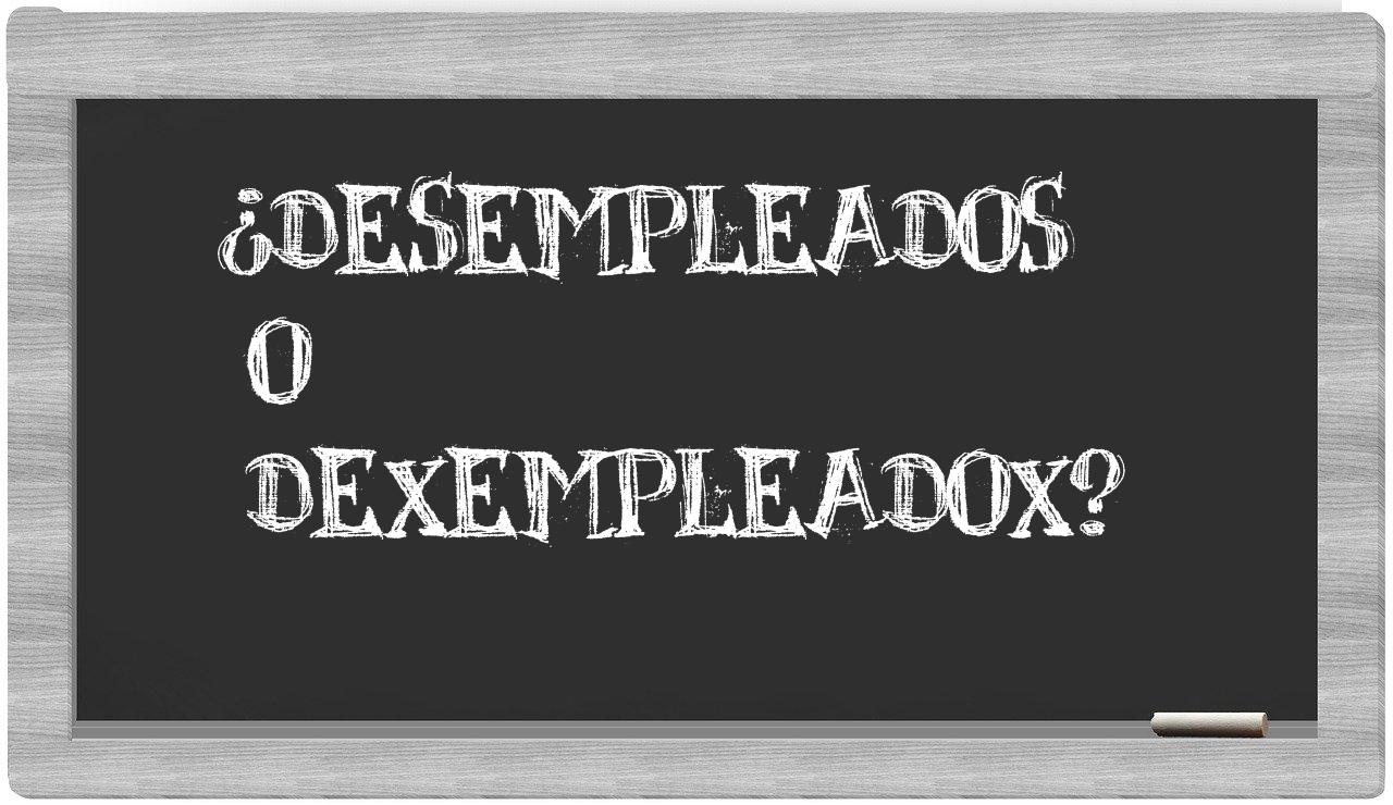 Cuando se presenta la elección entre desempleados y dexempleadox, es fundamental que estés seguro, puesto que únicamente desempleados se encuentra correctamente redactada. La forma dexempleadox no se encuentra registrada en el Diccionario de la Real Academia Española.
