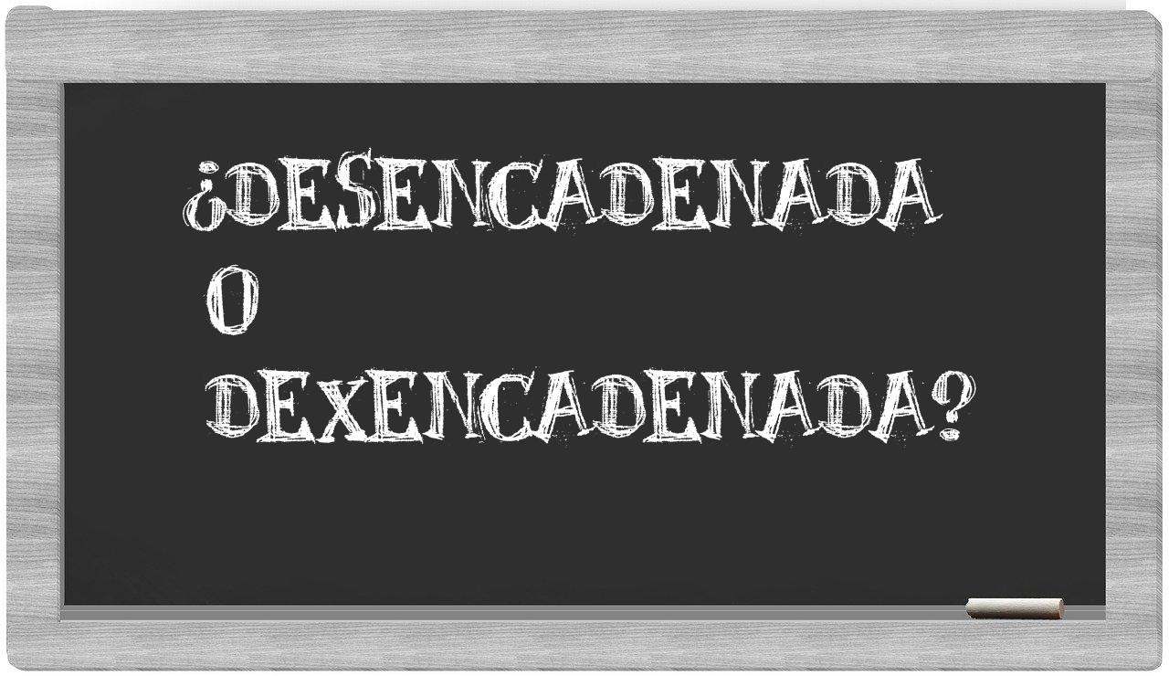 En la situación particular donde se confrontan los términos desencadenada y dexencadenada, es fundamental que no vaciles, pues únicamente desencadenada se encuentra correctamente redactada, mientras que dexencadenada no figura en el repertorio del Diccionario de la Real Academia Española.