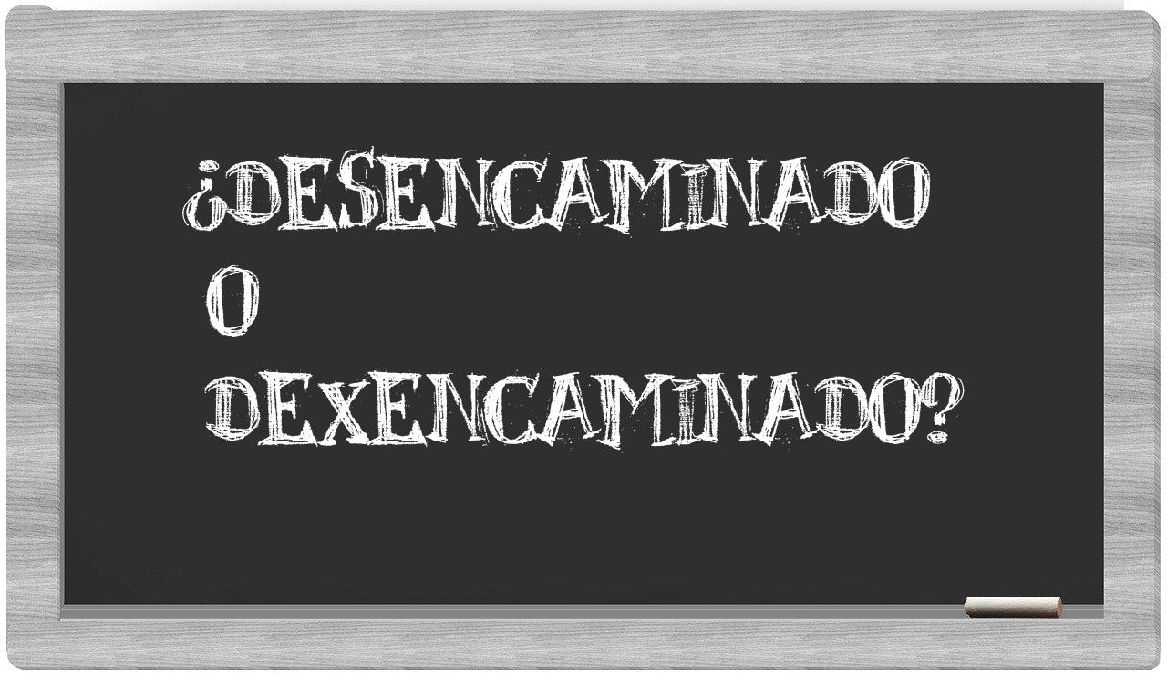 Cuando se trata del par de términos desencaminado y dexencaminado, nunca deberías titubear, pues solo desencaminado es la opción que se encuentra bien formulada; por otro lado, dexencaminado no figura en el Diccionario de la Real Academia Española.