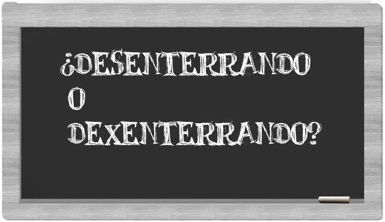 La mezcla entre desenterrando y dexenterrando surge esencialmente por la semejanza en su fonética. En la gran parte de los acentos hispanohablantes, estos términos presentan una sonoridad muy parecida, lo que puede inducir a la suposición de que tienen una escritura idéntica. No obstante, la manera correcta de escribir cada uno de ellos se basa en sus raíces etimológicas y en las normas particulares de la ortografía del español.