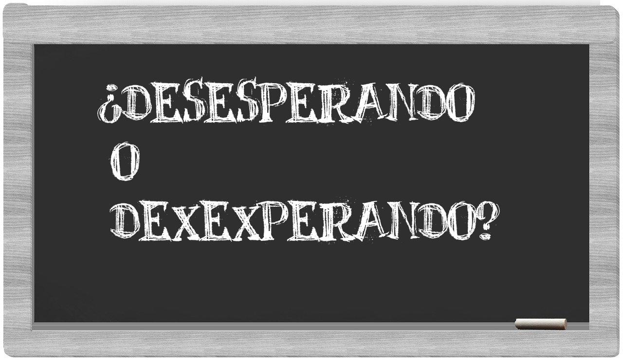 En la situación específica que enfrenta desesperando y dexexperando, la elección es clara y no debe generar confusión, puesto que únicamente desesperando se encuentra correctamente formulada; por el contrario, dexexperando no figura en el Diccionario de la Real Academia Española.