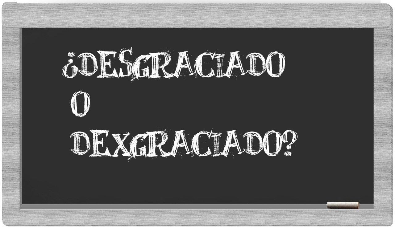 Cuando se presenta la disyuntiva entre desgraciado y dexgraciado, es fundamental no vacilar, dado que únicamente desgraciado es la que se encuentra adecuadamente redactada. Por su parte, dexgraciado no figura en el glosario de la Real Academia Española.