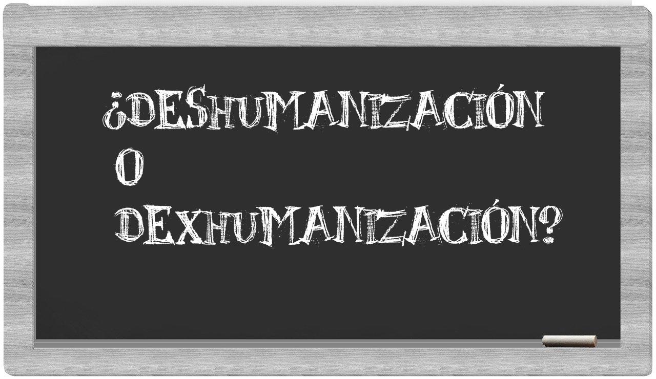 Cuando se presenta la disyuntiva entre deshumanización y dexhumanización, no hay razón para titubear, puesto que solo deshumanización cuenta con la aprobación del Diccionario de la Real Academia Española, mientras que dexhumanización no se encuentra registrado en sus páginas.