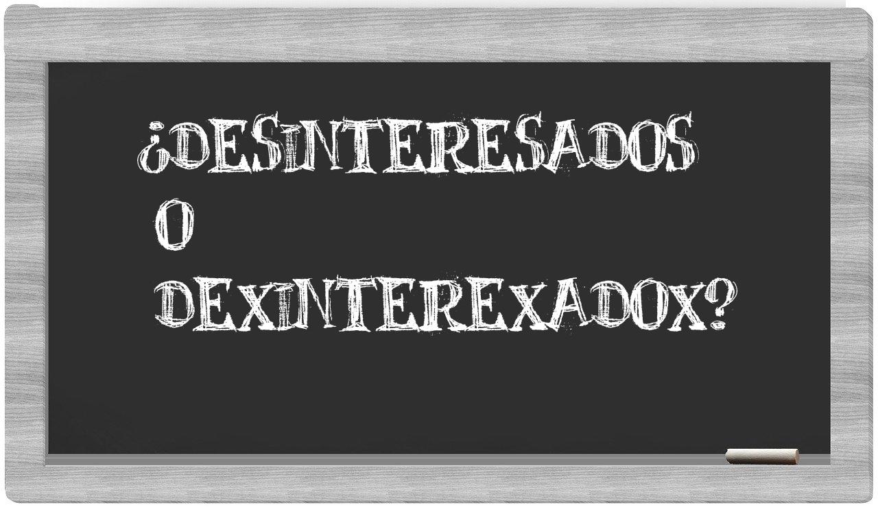 Cuando se trata de elegir entre desinteresados y dexinterexadox, la decisión debería ser clara y sin vacilaciones, pues únicamente desinteresados es la que se encuentra correctamente articulada; de hecho, dexinterexadox no figura en el prestigioso Diccionario de la Real Academia Española.