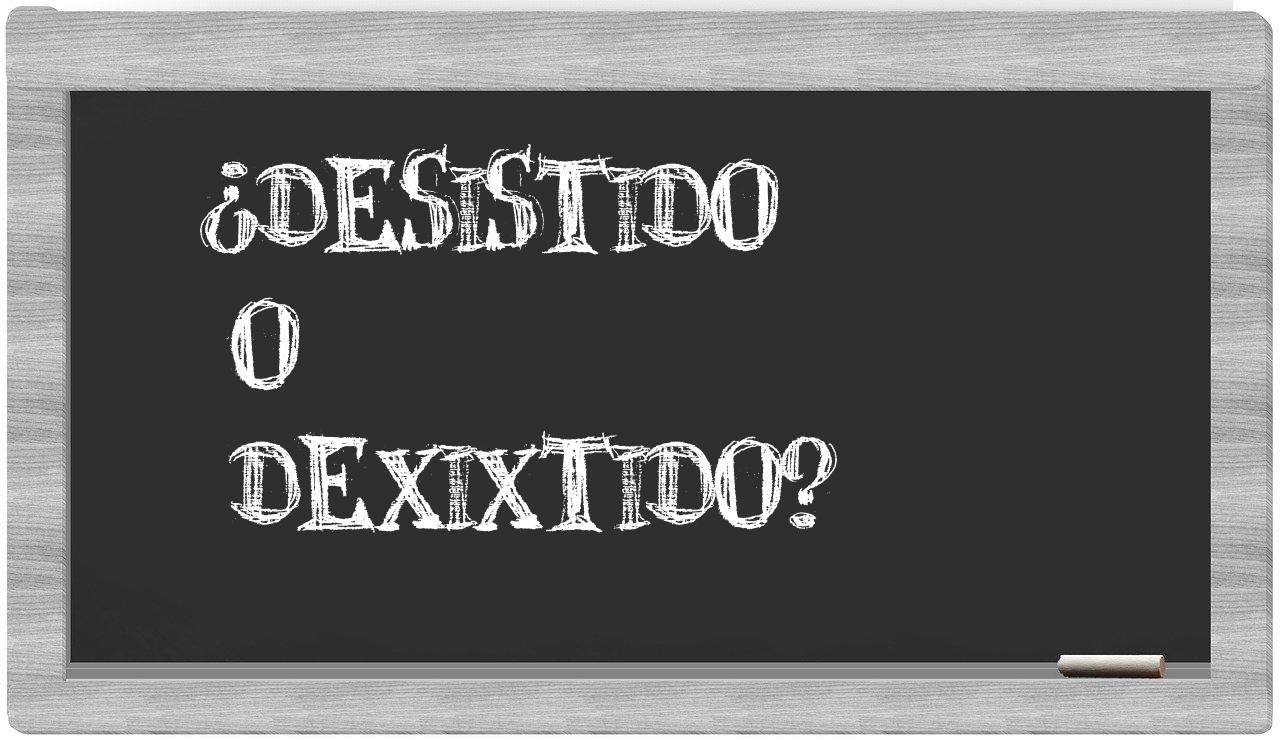 En la particular situación entre las expresiones desistido y dexixtido, nunca debería existir incertidumbre, puesto que únicamente desistido se encuentra registrada de manera adecuada. Por otro lado, dexixtido no figura en el Diccionario de la Real Academia Española.