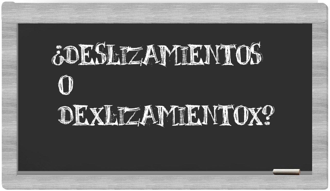 En la particular circunstancia de optar entre los términos deslizamientos y dexlizamientox, no deberías titubear en absoluto, dado que únicamente deslizamientos es la forma adecuada. Por otra parte, dexlizamientox carece de reconocimiento en el Diccionario de la Real Academia Española.