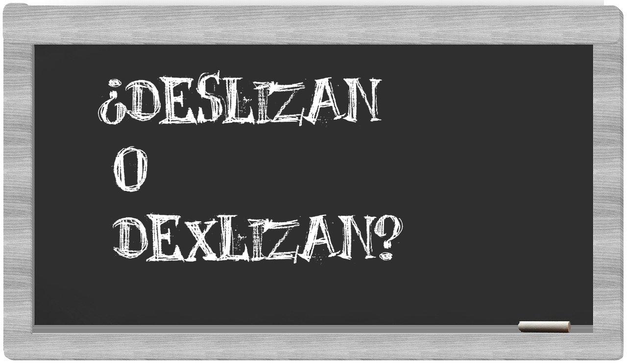 Cuando te enfrentes a la disyuntiva entre deslizan y dexlizan, no hay lugar para la incertidumbre, porque únicamente deslizan es la que se encuentra validada y aceptada, mientras que dexlizan no figura en el prestigioso Diccionario de la Real Academia Española.