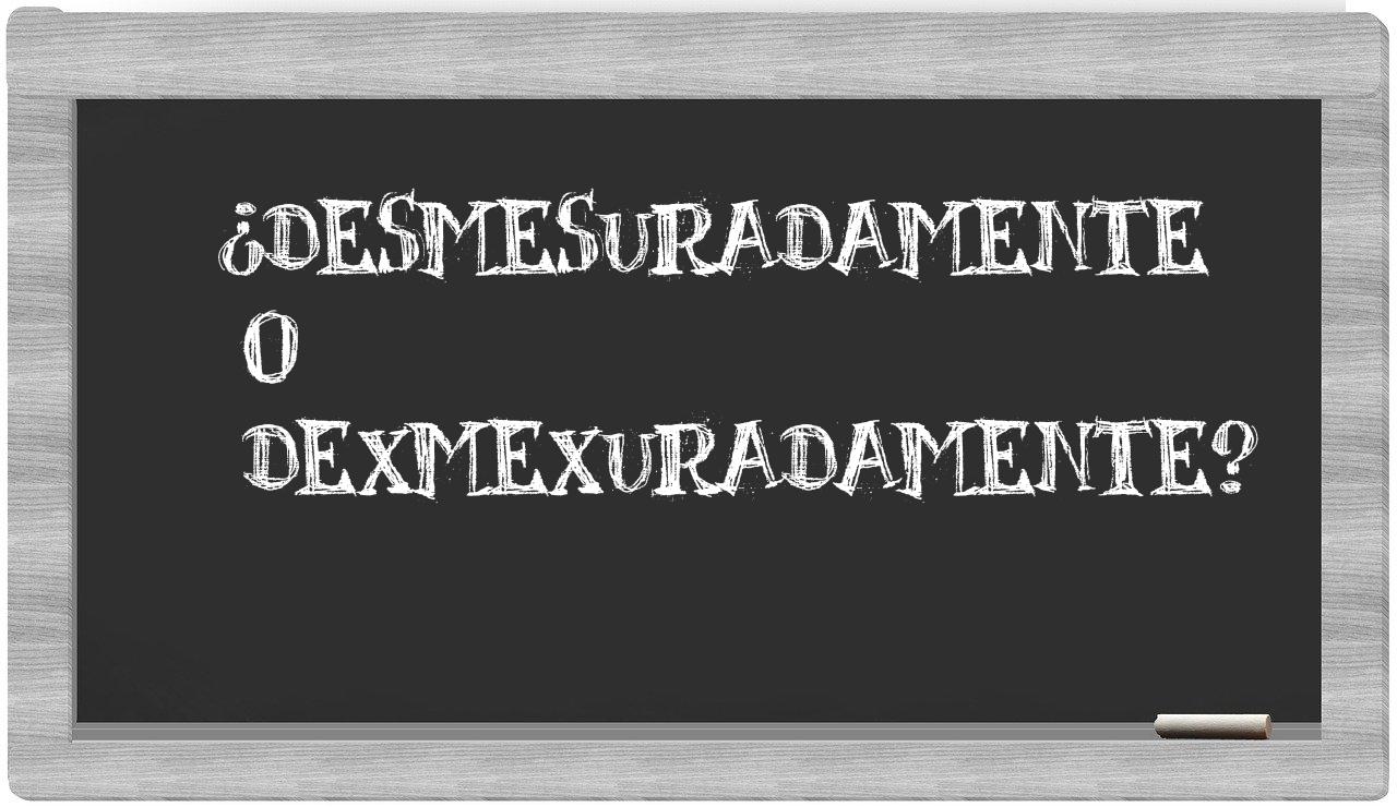 En la situación particular que involucra las palabras desmesuradamente y dexmexuradamente, no deberías titubear, porque únicamente desmesuradamente es la que se encuentra debidamente registrada. La palabra dexmexuradamente, por otro lado, no figura en el Diccionario de la Real Academia Española.