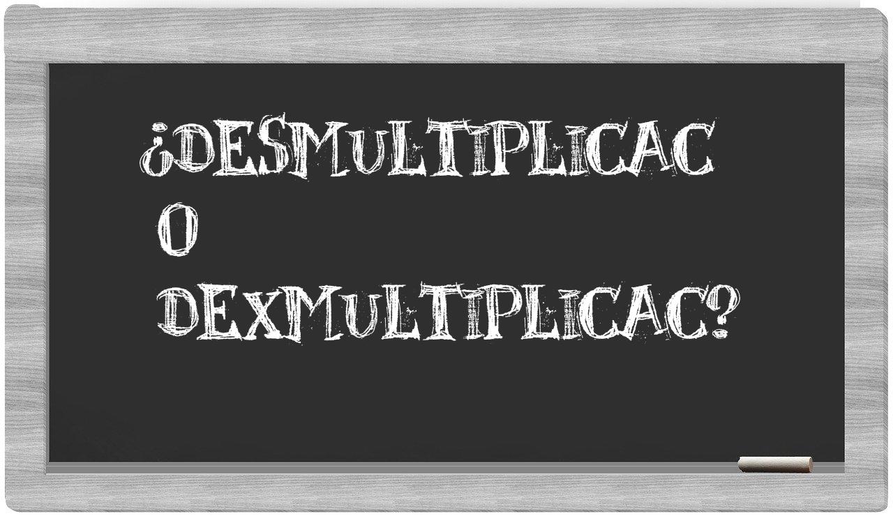 Cuando se trata de elegir entre las expresiones desmultiplicac y dexmultiplicac, nunca deberías titubear, puesto que únicamente desmultiplicac es la que está adecuadamente redactada. Por otro lado, dexmultiplicac no figura en el léxico oficial de la Real Academia Española.