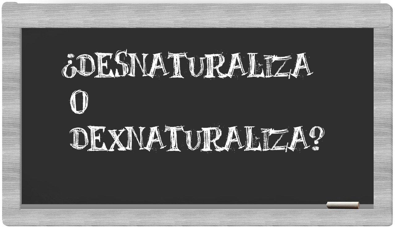 Cuando te encuentres ante la elección entre desnaturaliza y dexnaturaliza, no vaciles ni un instante, puesto que únicamente desnaturaliza se encuentra debidamente registrada y aceptada en el Diccionario de la Real Academia Española, mientras que dexnaturaliza carece de reconocimiento oficial.