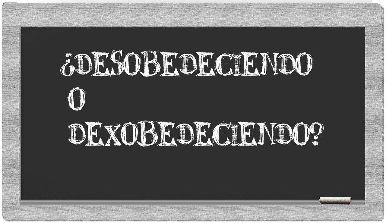 Cuando te enfrentes a la elección entre desobedeciendo y dexobedeciendo, no permitas que la incertidumbre te invada, pues únicamente desobedeciendo es la opción que cuenta con la validación adecuada; de hecho, dexobedeciendo ni siquiera se encuentra registrada en el prestigioso Diccionario de la Real Academia Española.