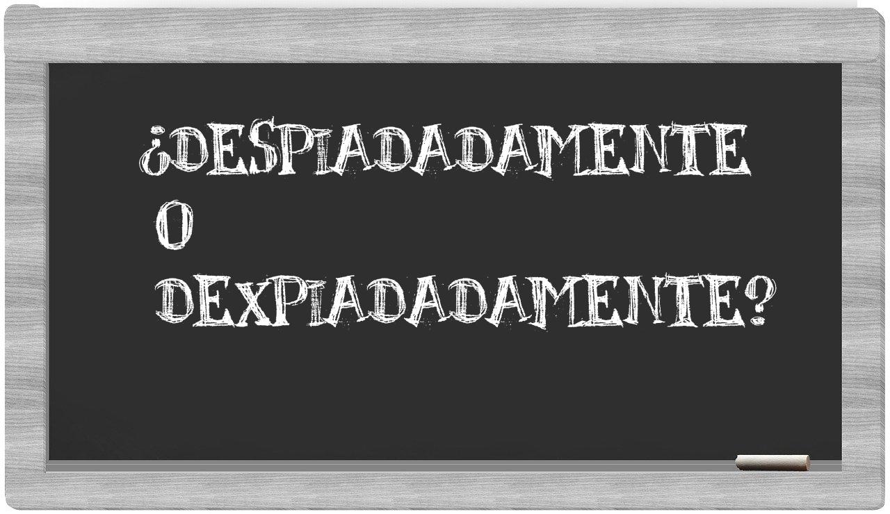 Cuando se trata de la distinción entre despiadadamente y dexpiadadamente, no hay lugar para la incertidumbre, puesto que únicamente despiadadamente se encuentra correctamente redactada. Por otro lado, dexpiadadamente no figura en el repertorio del Diccionario de la Real Academia Española.