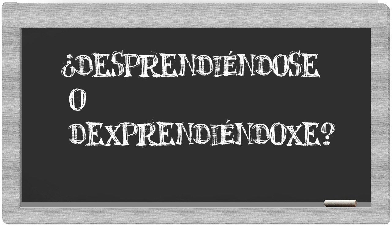 Cuando se trata de la relación entre desprendiéndose y dexprendiéndoxe, no hay lugar para la incertidumbre, puesto que desprendiéndose es la única que se encuentra registrada de manera adecuada, mientras que dexprendiéndoxe no forma parte del léxico del Diccionario de la Real Academia Española.
