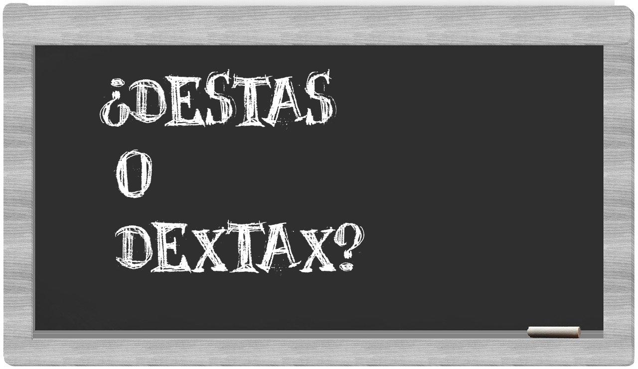 La mezcla entre destas y dextax es principalmente atribuible a su semejanza sonora. En muchos dialectos del español, estas palabras presentan una pronunciación casi idéntica, lo que puede inducir a la creencia de que se escriben de manera análoga. Sin embargo, la correcta escritura de cada término se basa en sus raíces etimológicas y en las normas particulares que rigen la ortografía en el idioma español.