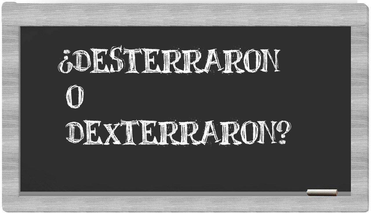 Cuando te encuentres en la encrucijada entre desterraron y dexterraron, ten la certeza de que solo desterraron es la opción adecuada, puesto que dexterraron carece de reconocimiento en el prestigioso Diccionario de la Real Academia de la Lengua.