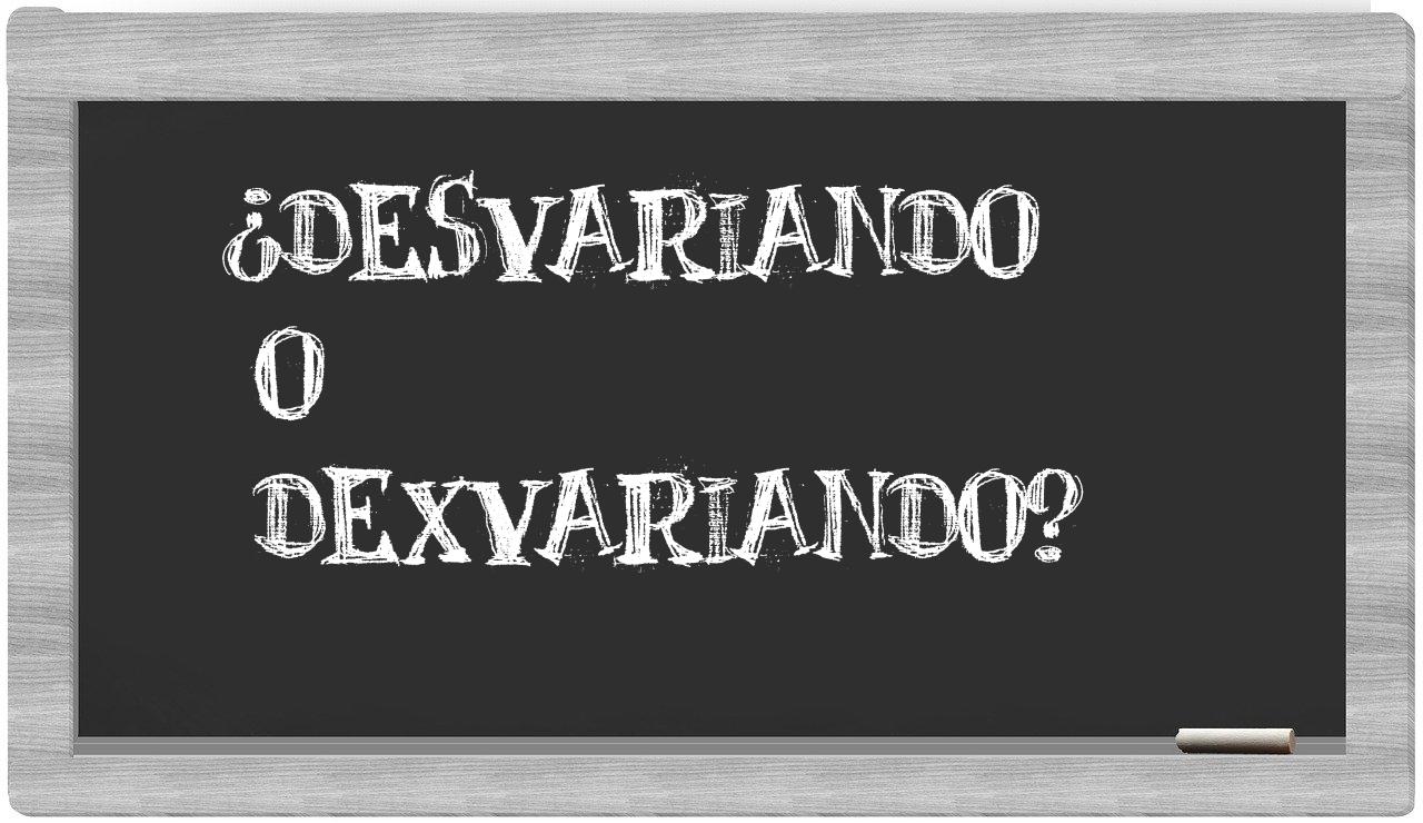 Cuando se presenta la disyuntiva entre desvariando y dexvariando, es menester que no haya lugar a la incertidumbre, puesto que solo desvariando se encuentra debidamente consignada en el Diccionario de la Real Academia Española, mientras que dexvariando se encuentra ausente en sus páginas oficiales.