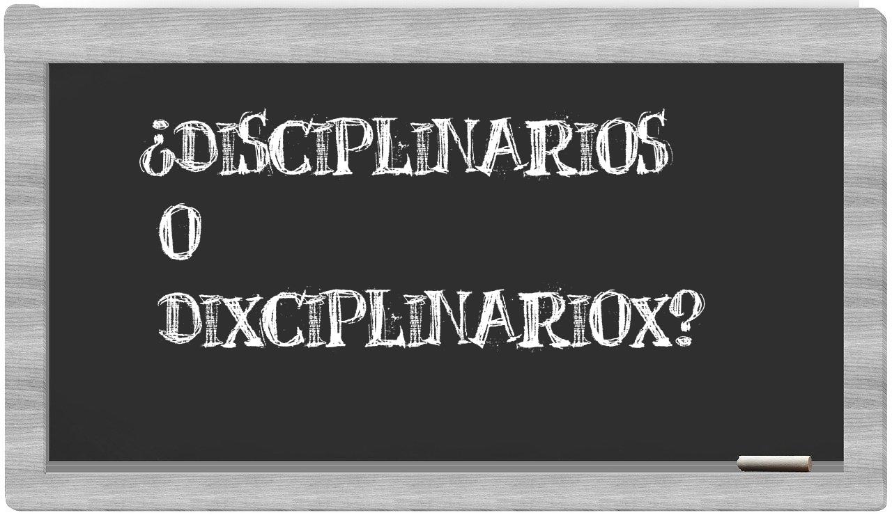 Cuando te encuentres ante las opciones de disciplinarios y dixciplinariox, no vaciles en tu elección, puesto que únicamente disciplinarios es la que se encuentra debidamente aceptada, mientras que dixciplinariox no figura en el Diccionario de la Real Academia Española.
