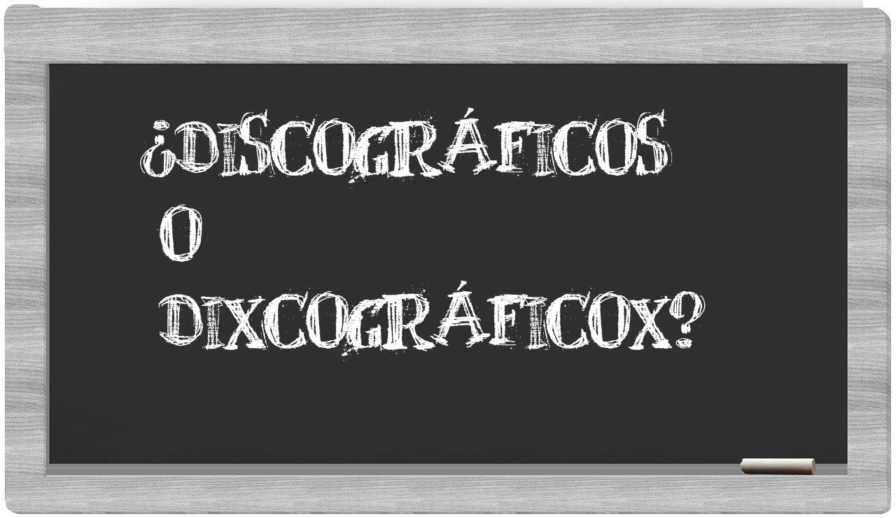 Cuando se presenta la elección entre discográficos y dixcográficox, la decisión debe ser clara y sin titubeos, puesto que únicamente discográficos es la forma adecuada. Por otro lado, dixcográficox no figura en el Diccionario de la Real Academia Española.
