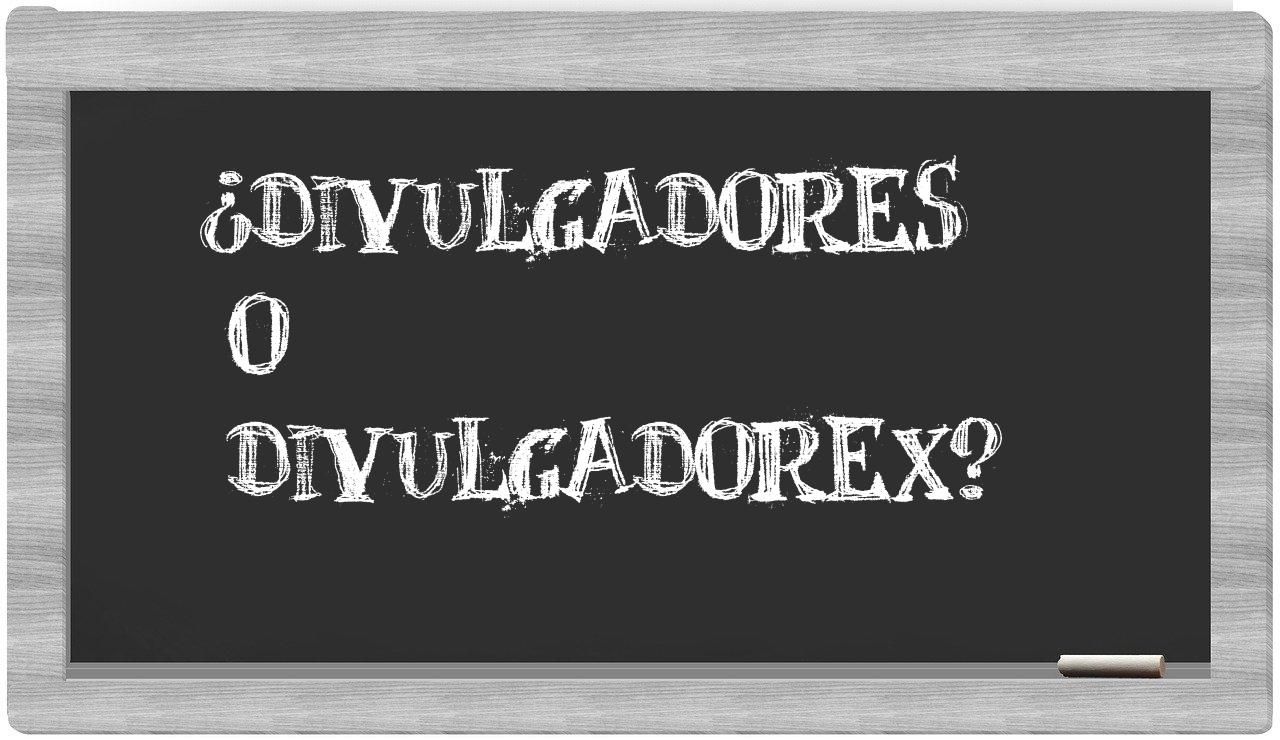 Cuando se trata de la distinción entre divulgadores y divulgadorex, no hay lugar para la incertidumbre, puesto que únicamente divulgadores se encuentra correctamente redactada. Por otro lado, divulgadorex no figura en el repertorio del Diccionario de la Real Academia Española.