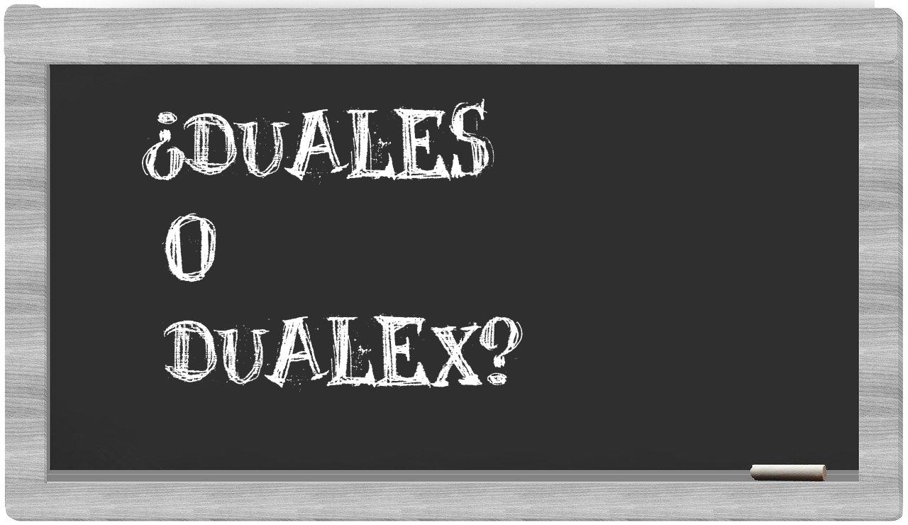 Cuando se trata de la relación entre duales y dualex, no hay lugar para la incertidumbre, puesto que duales es la única que se encuentra registrada de manera adecuada, mientras que dualex no forma parte del léxico del Diccionario de la Real Academia Española.