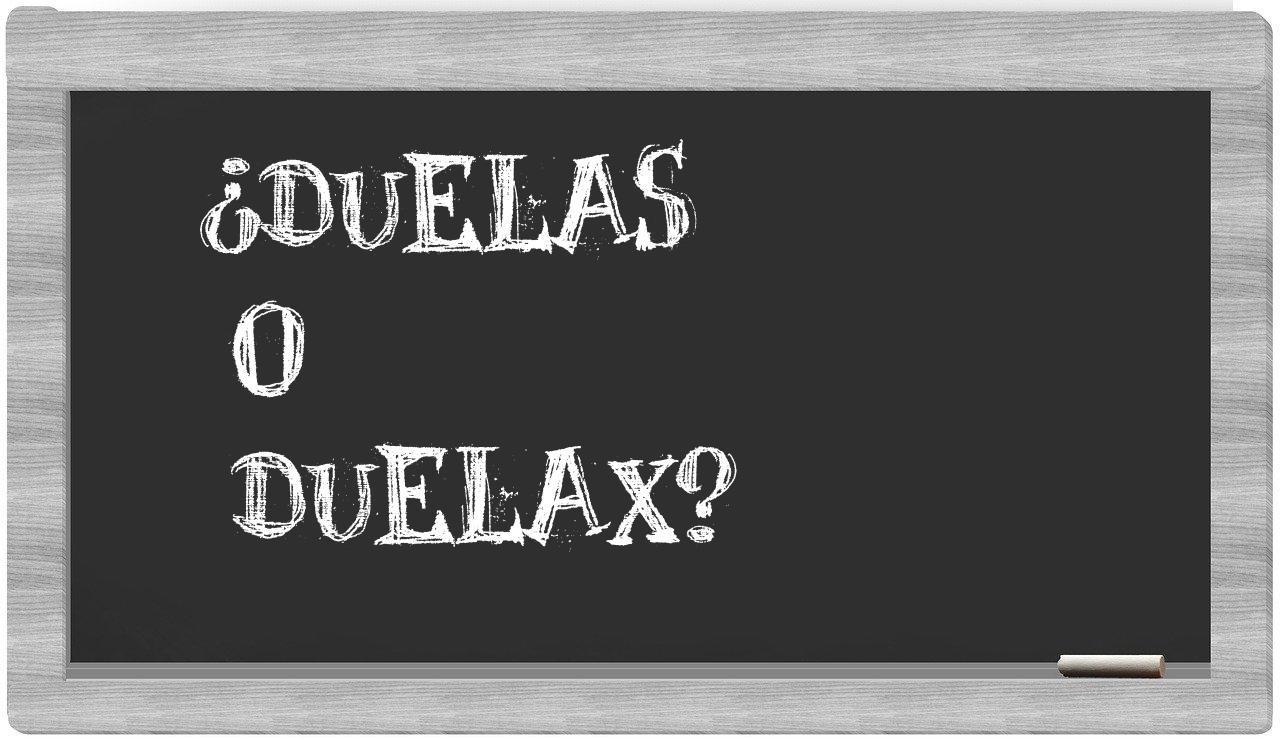 Cuando te encuentres ante la elección entre duelas y duelax, no vaciles ni un instante, puesto que únicamente duelas se encuentra debidamente registrada y aceptada en el Diccionario de la Real Academia Española, mientras que duelax carece de reconocimiento oficial.
