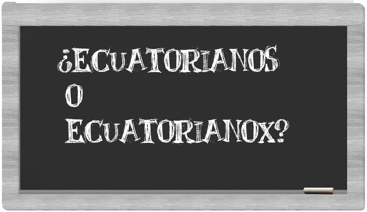 Cuando se trata de las expresiones ecuatorianos y ecuatorianox, la elección es clara: no hay motivo para titubear, puesto que únicamente ecuatorianos es la forma correcta. Por cierto, ecuatorianox no figura en el prestigioso Diccionario de la Real Academia Española.