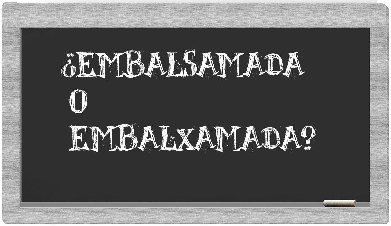 Al tener en cuenta la relación entre embalsamada y embalxamada, es crucial que mantengas certeza, puesto que únicamente embalsamada está adecuadamente formulada. La palabra embalxamada no tiene lugar en el Diccionario de la Real Academia Española.