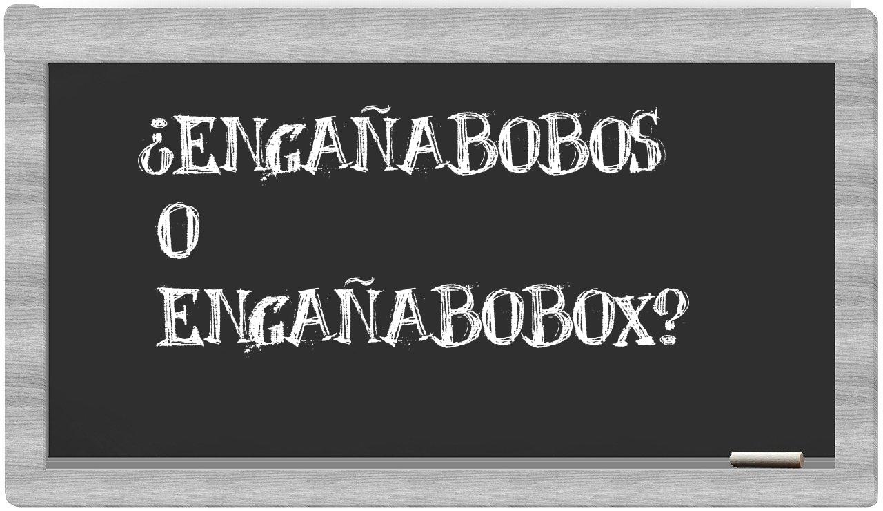 Cuando se presenta la disyuntiva entre engañabobos y engañabobox, no hay razón para titubear, puesto que solo engañabobos cuenta con la aprobación del Diccionario de la Real Academia Española, mientras que engañabobox no se encuentra registrado en sus páginas.