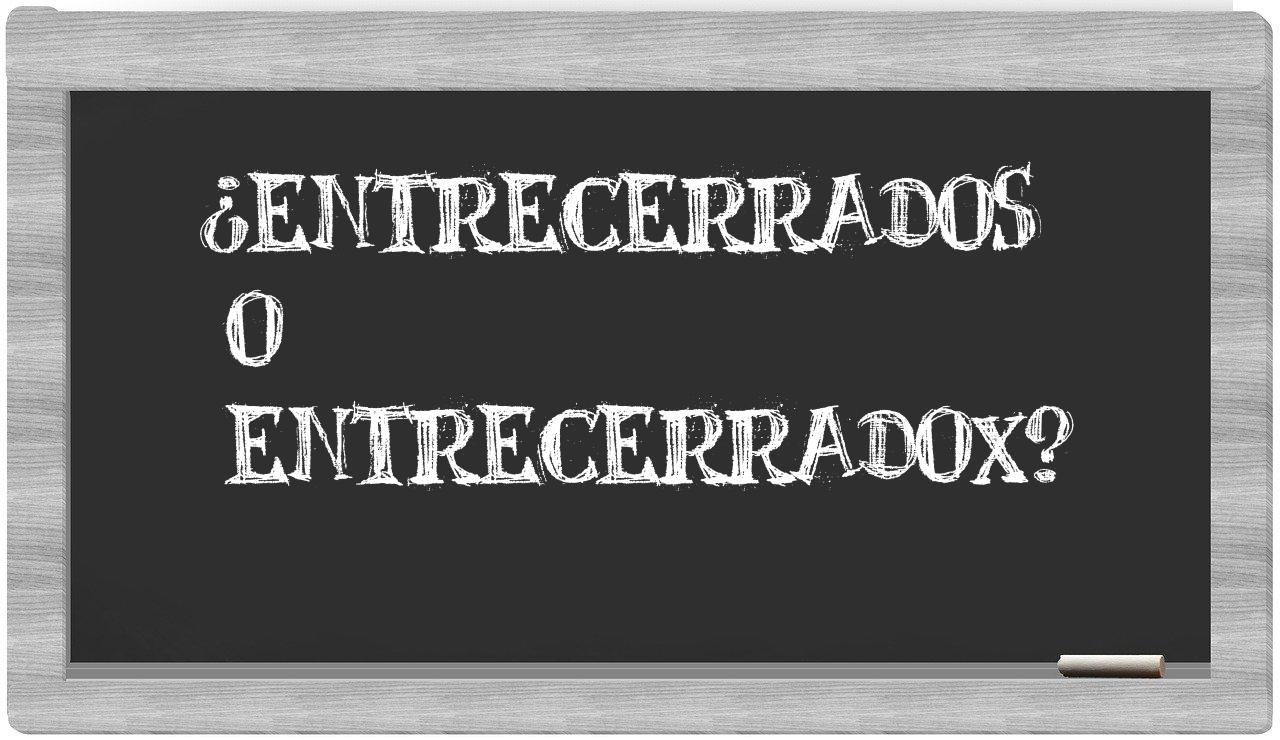 En lo que respecta a la comparación entre entrecerrados y entrecerradox, nunca deberías experimentar incertidumbre, porque únicamente entrecerrados es la forma correcta de escribirlo. Por otra parte, entrecerradox no tiene cabida en el Diccionario de la Real Academia Española.