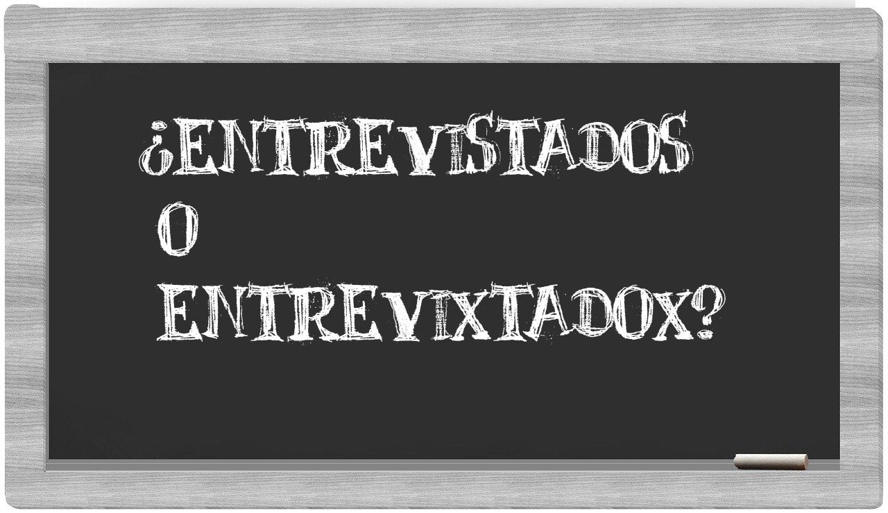 Cuando te enfrentes a la elección entre los términos entrevistados y entrevixtadox, es importante que no titubees, porque únicamente entrevistados es la opción que figura adecuadamente en el diccionario de la Real Academia Española, mientras que entrevixtadox no tiene cabida en su compilación oficial.