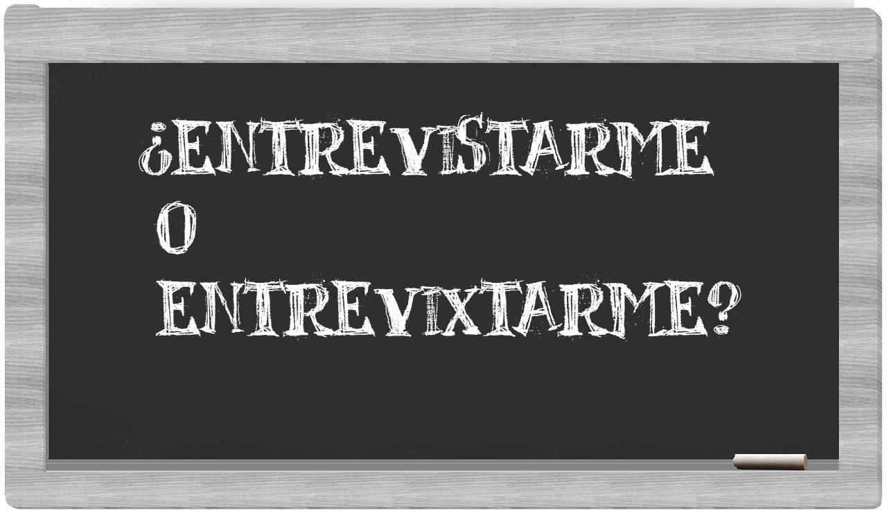En la situación específica que involucra los términos entrevistarme y entrevixtarme, no deberías titubear en tu elección, puesto que únicamente entrevistarme se encuentra correctamente redactado; de hecho, entrevixtarme no forma parte del léxico reconocido por la Real Academia Española.