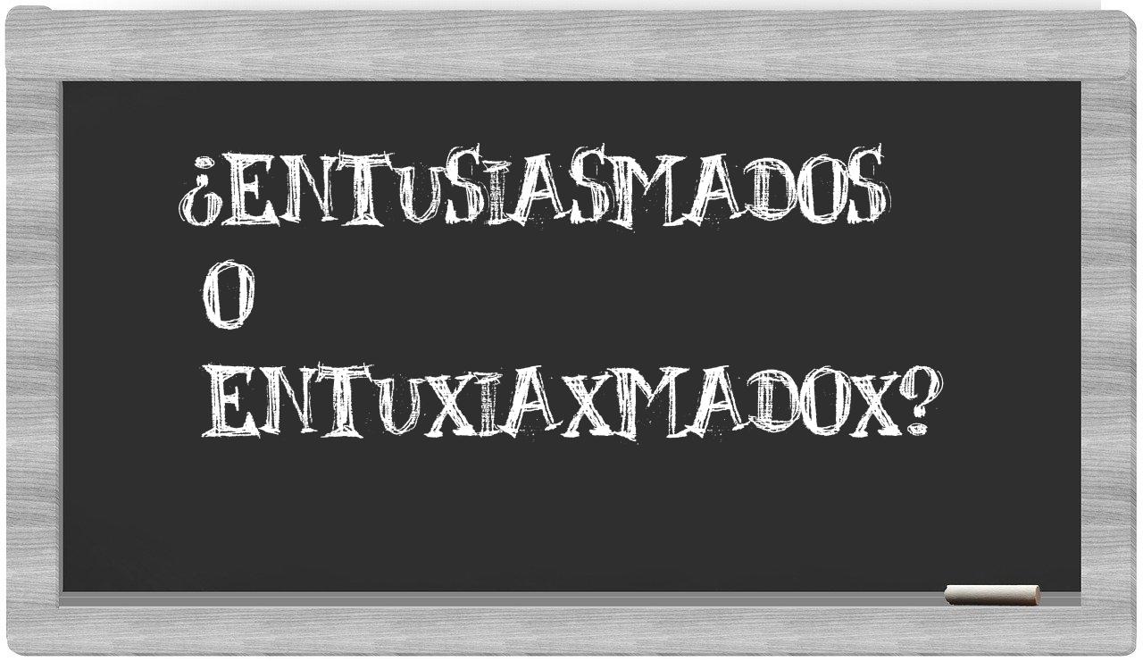 Cuando se trata de los términos entusiasmados y entuxiaxmadox, no deberías titubear en tu elección, porque únicamente entusiasmados es el que se encuentra correctamente redactado. Por otro lado, entuxiaxmadox no figura en el Diccionario de la Real Academia de la Lengua.