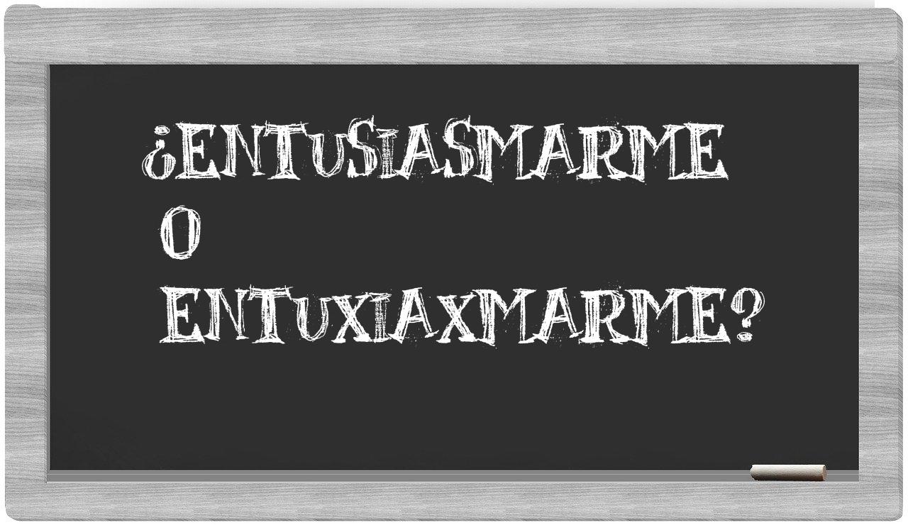 Cuando se presenta la comparación entre entusiasmarme y entuxiaxmarme, es fundamental que no haya lugar para la indecisión, puesto que únicamente entusiasmarme es la opción que se encuentra debidamente aceptada, mientras que entuxiaxmarme no tiene cabida en el Diccionario de la Real Academia Española.